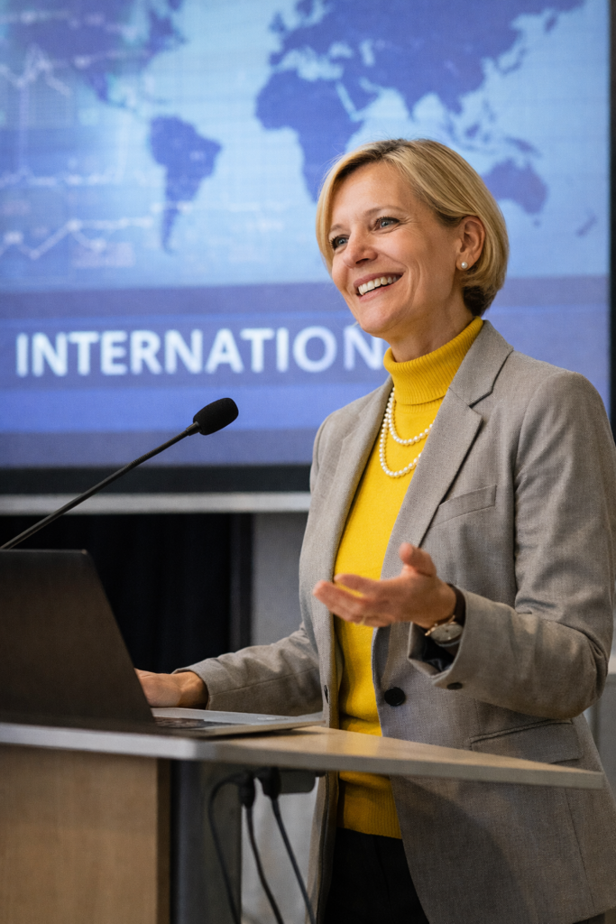 Durch ihre mehrsprachige Tätigkeit in Deutsch, Spanisch und Englisch arbeitet sie für ein internationales Publikum und beschäftigt sich mit Themen der europäischen Integration, der Beziehungen zwischen Europa und Lateinamerika sowie mit strategischen Entwicklungen im eurasischen Raum.