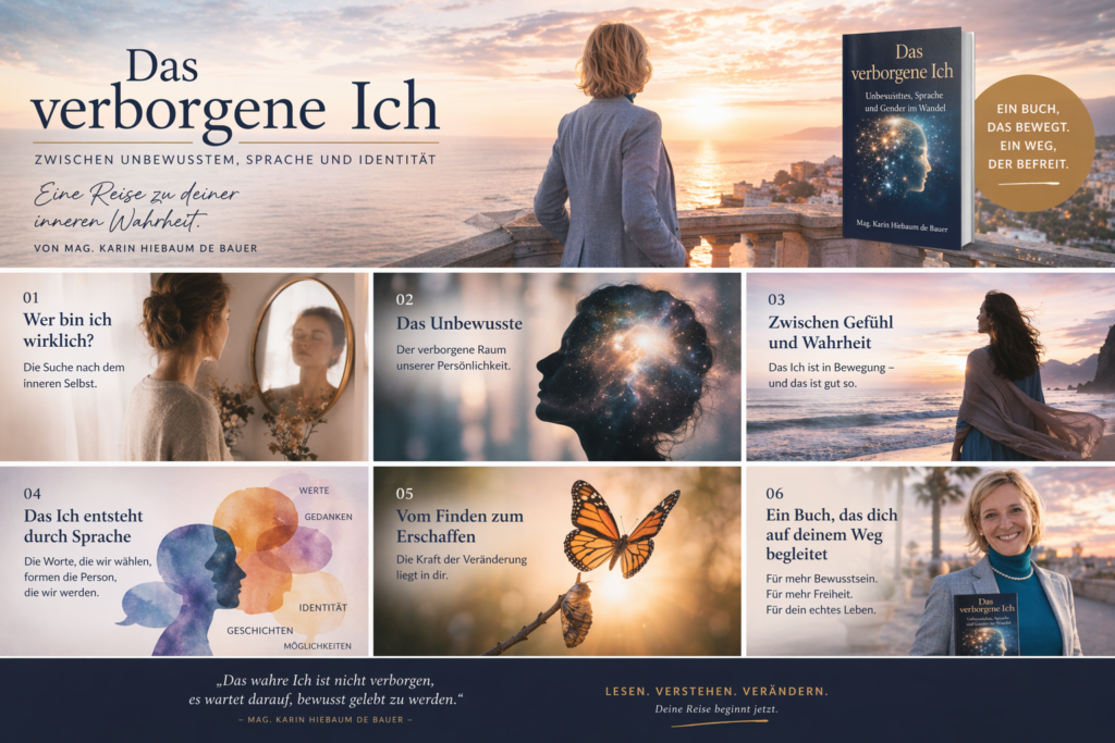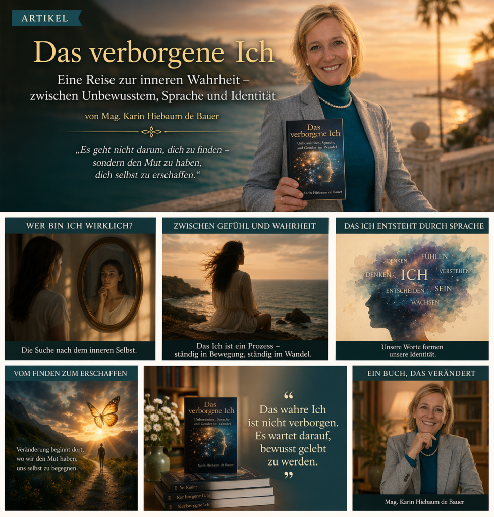 Das Buch „Das verborgene Ich“ von Mag. Karin Hiebaum de Bauer setzt genau an diesem Punkt an. Es ist mehr als ein Werk der Psychologie, mehr als eine theoretische Auseinandersetzung mit Identität. Es ist eine Einladung – eine Einladung, den Blick nach innen zu richten und sich selbst jenseits gesellschaftlicher Rollen und Masken zu begegnen.